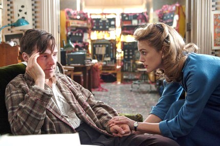 Apparaissant comme réservé et égocentrique, Alan Turing va se révéler comme un personnage énigmatique et attachant à cause de cette barrière qu’il s’efforce à conserver entre sa personne et ceux qui l’entourent. Au-delà de son contexte historique qui pourrait être prétexte à créer une dynamique et de l’action, Imitation Game est un film qui happe le spectateur grâce au traitement effectué sur le protagoniste qui n’apparaît pas immédiatement comme un héros ou anti héros. Au contraire, c’est un homme comme tant d’autres, mis à part qu’il n’a pas la vie d’un autre. Alan Turing est un génie, un humain au passé trouble, un humain attachant et dont on ne souhaiterait que le bonheur, car au fond de lui c’est tout ce qu’il demande, qu’on le laisse en paix, lui et ceux auxquels il tient. Au-delà de l’histoire du protagoniste, aussi importante et primordiale soit-elle au bon développement du scénario, Graham Moore prend soin de développer les personnalités de ceux qui entoure ce génie de mathématicien. Pas tous loger à la même enseigne, les personnages secondaires trouveront au cœur du récit leur arc narratif respectif qui leur permettra de gagner une connexion à l’arc narratif principal dédié au protagoniste, ainsi qu’au contexte historique qui permet au film de souder sa diégèse et de plonger le spectateur au cœur de l’époque. Intelligemment écrit, le scénario prend soin de simplement évoquer ou développer plus en profondeur chaque personnage afin que celui-ci prenne place au sein d’un échiquier qui va jongler entre divers questionnements toujours en lien avec Alan Turing. On regrettera malheureusement la mauvaise utilisation d’un entretient avec la police qui se déroule chronologiquement parlant à la fin du film, mais placé en son milieu dans le but de créer une nouvelle dynamique et qu’aucune longueur ne prenne le pas sur la qualité globale du film. D’un point de vue rythmique ce montage parallèle avec flashback et flashforward est une bonne chose, car il permet au film de ne pas s’étirer en longueur, mais force est de constater qu’ils n’apportent rien au récit.