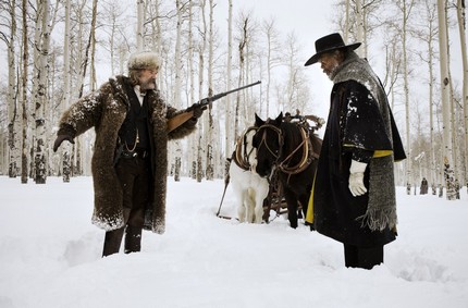 Car ce n’est pas un Tarantino comme un autre, ou alors c’est un Tarantino comme tous les autres à la fois, synthèse particulièrement savoureuse tout en étant un film de la maturité. La distribution a quelque chose à y voir, l’ensemble le plus « tarantinesque » depuis Pulp fiction (mention spéciale à Walton Goggins dans le rôle d’un shérif capable autant de bêtise que de génie, qui gagnera sans cesse en complexité et deviendra, à sa manière, aussi marquant que les deux têtes d’affiche Samuel Jackson et Kurt Russel). On retrouve le huis clos tendu de Reservoir dogs, les excès de Django Unchained et ses raffinements stylistiques, le chapitrage d’Inglourious basterds… on a même droit à un monologue hilarant de Samuel Jackson qui n’est pas sans rappeler le « Ézéchiel 25, verset 10… » de Pulp fiction.
